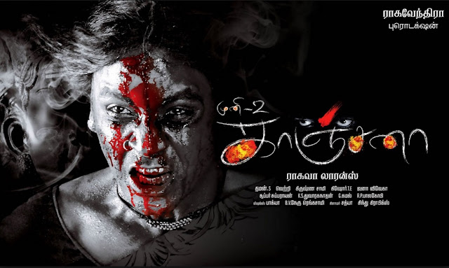 Synopsis: The movie revolves around Lawrence who plays Raghava, a youth who fears for anything. So afraid that he dares steps out his house in dark. His mother (Kovai Sarala) is his pillar of strength. As it happens he comes across strange things in life, quite typical to movies of horror community. He slowly behaves like a possessed woman and all hell breaks loose.